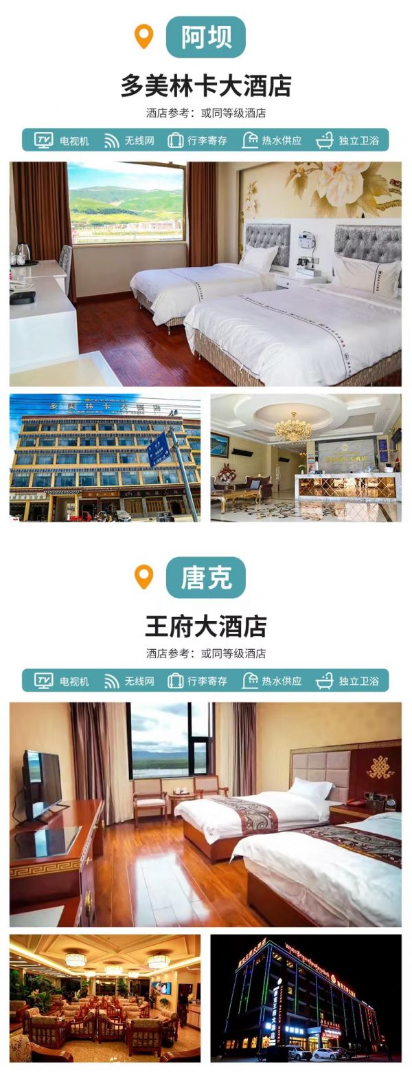 ?阿壩:多美林卡、阿壩縣聚德酒店、古格大酒店、或其他同級酒店