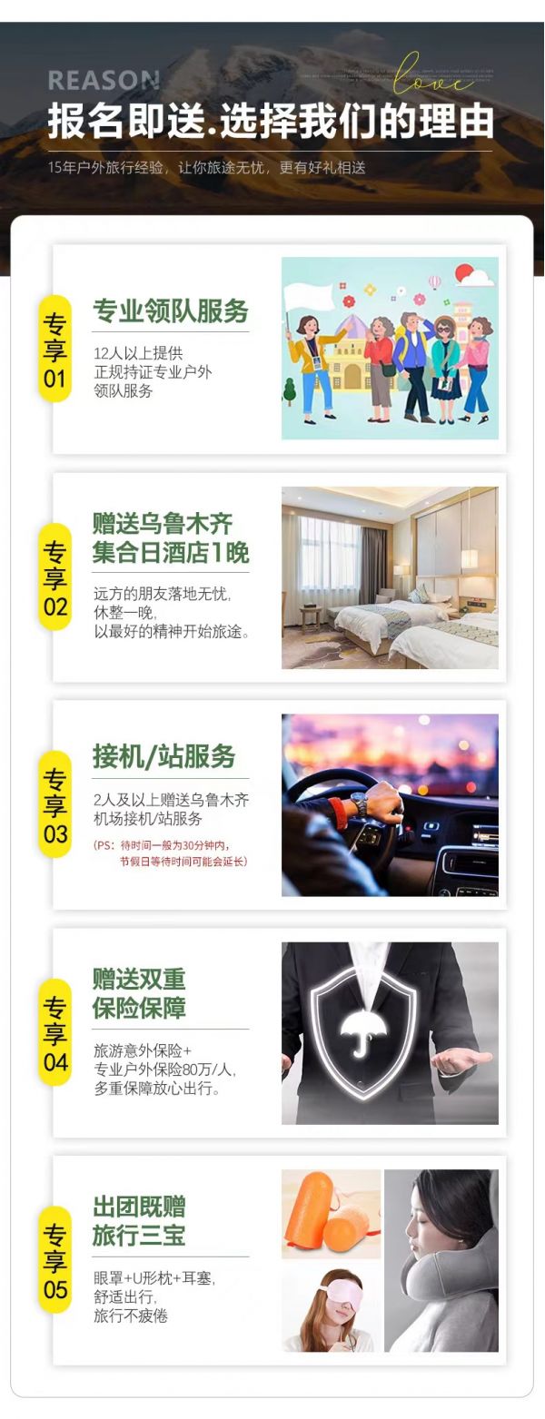 今天全國各地的隊友將來到烏魯木齊集合,提前預(yù)訂了免費接機/接站的朋友將會有接機司機提前聯(lián)系您。接送至我們安排好的酒店,辦理入住后大家可自由活動。