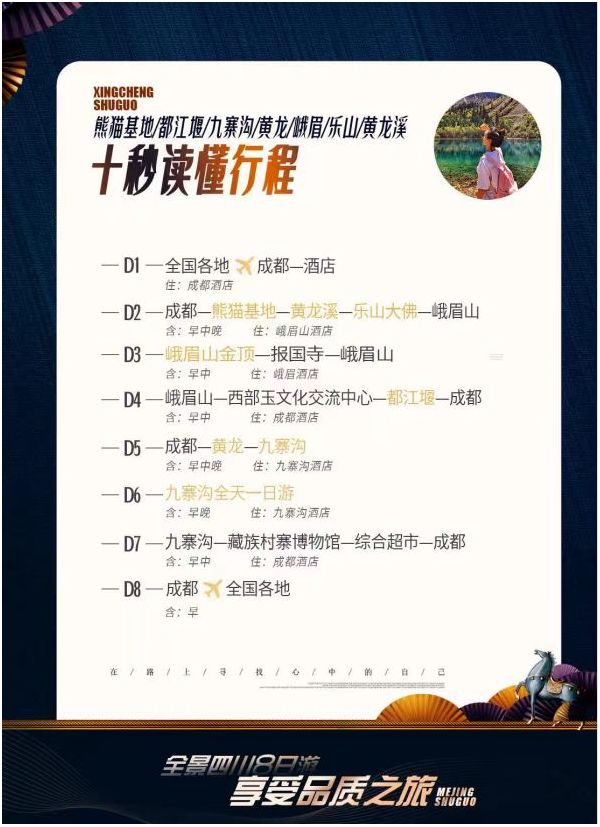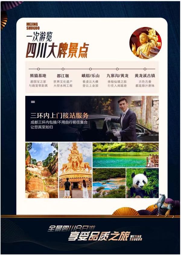 成都/九寨溝/黃龍/峨眉山/樂山大佛/熊貓基地/都江堰/黃龍溪古鎮(zhèn)雙飛8日
