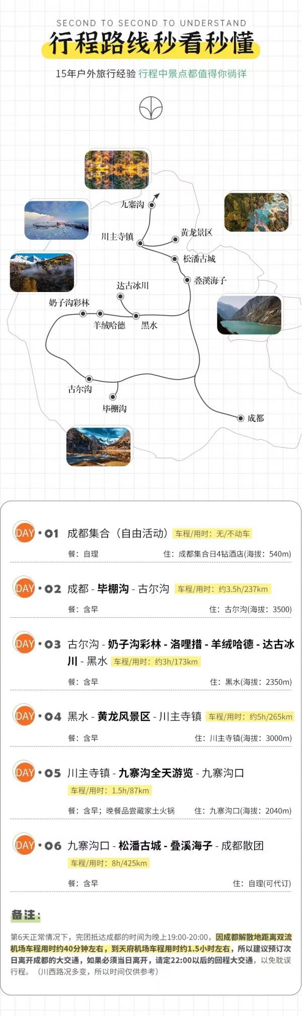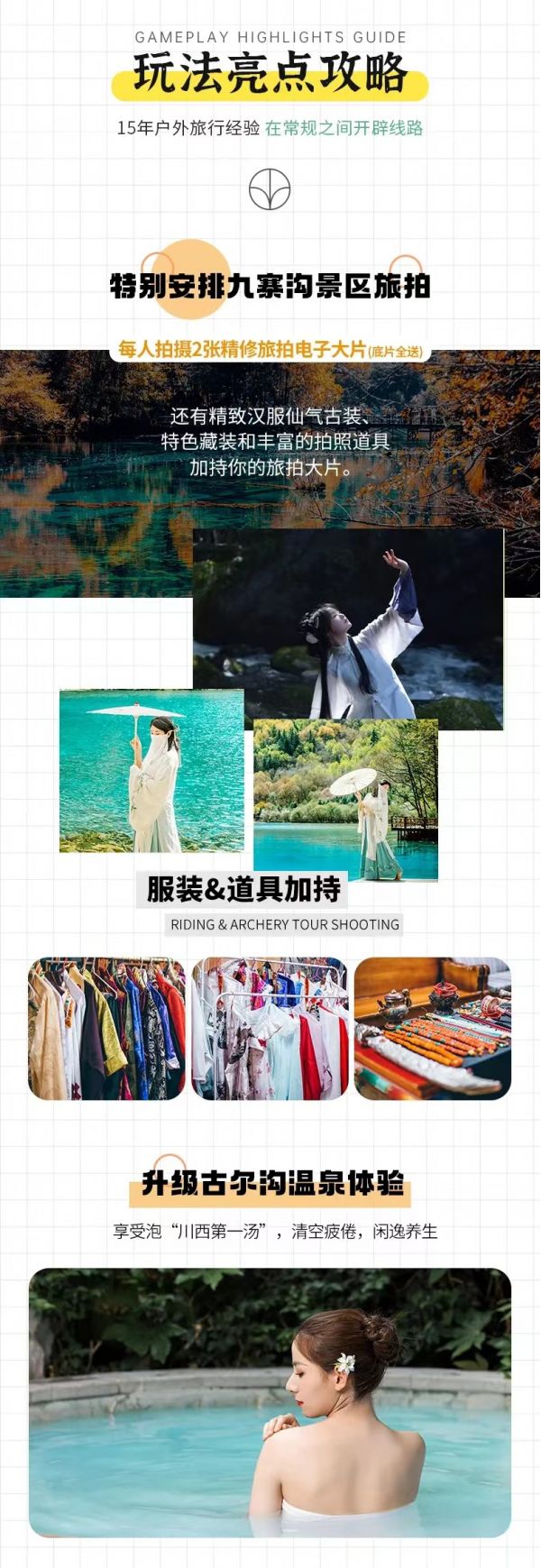 請對應使用我方玩聚九寨環線6日行程,因使用其它行程造成的投訴,責任自負;請仔細閱讀以上行程文檔,同意并保證遵守我方安排,以免為您帶來不必要的麻煩;如產生合同糾紛或人身意外事故,按《中華人民共和國合同法》、《道路交通法》、《保險賠償條例》裁定;本行程作為旅游合同附頁與旅游合同同等法律效力。