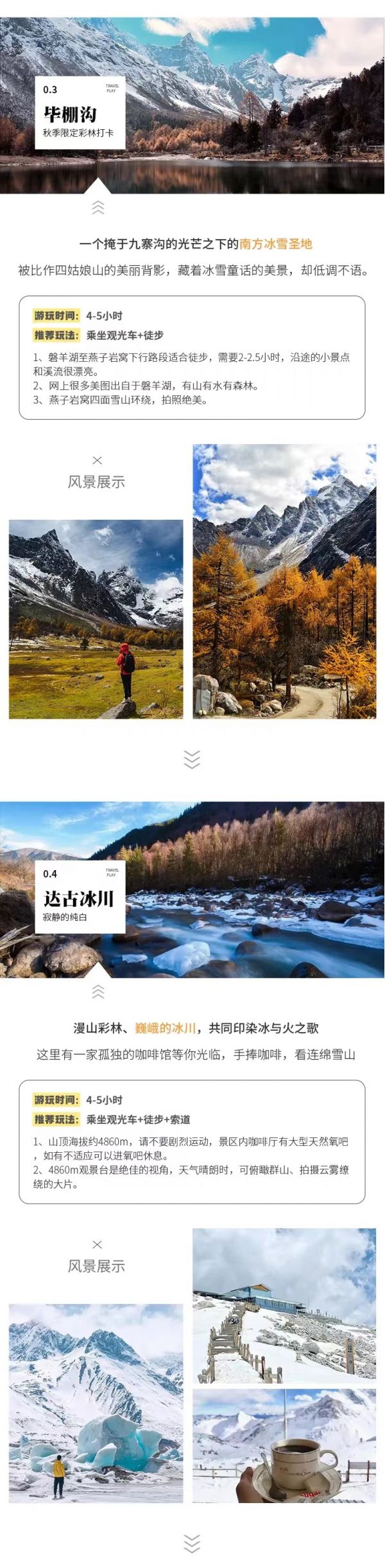 隨后游覽【紅軍湖】、【紅軍橋】、【神牛湖】,欣賞沿途的美景。后到達索道下站,也就是觀光車終點站,從這里開始就是達古冰川的精華景點,10-11月紅葉彩林漫山遍野,層林盡染,猶如一幅彩色油畫。我們可以在索道下站坐索道直接上到山頂的冰川腹地,看連綿雪山冰川,觀賞【一號冰川】,感受一覽眾山小,俯視一切的雄壯氣概。還可以在世界上海拔最高的咖啡館,同時也被稱為【世界上最孤獨的咖啡館】,喝上一杯咖啡,飽覽美景。看過冰山下的秋景前往黑水縣入住。