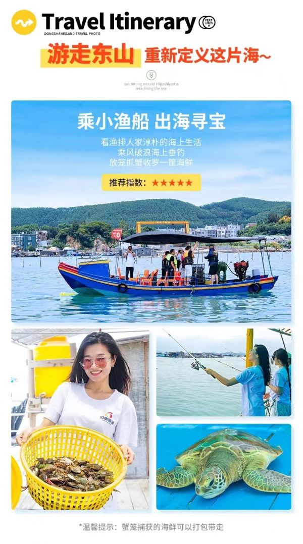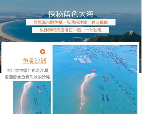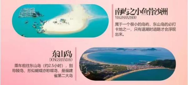 魚骨沙洲·快艇出海:前往【魚骨沙洲雙面?!繉儆谝粋€很小的島嶼,東山島的必打卡地之一,只有退潮時道路才會浮現出來。建議下午的時候去,千萬要注意漲潮時間喔。島嶼上有一座燈塔(是電影《你的婚禮》里面出鏡的那座喔),如果你站在燈塔旁邊的礁石上,你就會發現在距離不遠處還有一座燈塔。兩座燈塔隔海相望,仿佛就像是一對戀人,彼此相守,而大陸就是他們的孩子。致力打造東山島必去網紅打卡地?...