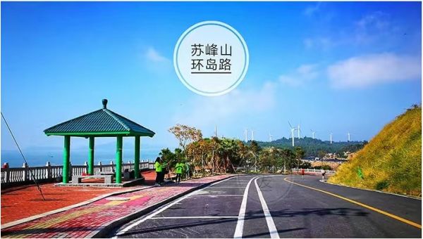 蘇峰山公路:東山島第一高峰,長 8.53公里,配步行道、觀景臺、服務區、停車場等旅游設施,是東山島風景的一大亮點。山上名勝古跡眾多,是“東山島首屆國際山地半程馬拉松賽”和“2016中國?東山島首屆國際自行車賽”的賽道,也是福建最美公路之一。一邊青山一邊藍海,藍色的圍欄,橙、黃色的馬路,漫步在這里,一路風景如畫!在蘇峰山環島公路上,遠眺東山島風景,山海相應,是拍攝風景和人像的好去處。