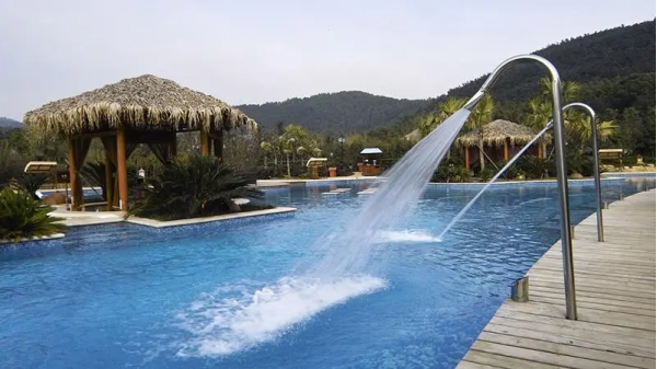度假村擁有據古方調制的各種美容湯池和保健湯池星羅其間,SPA水療區與冷熱瀑布浴打造國際流行溫泉沐浴文化,豪華五星級客房、中西餐廳、拓展培訓基地、天沐湖垂釣、夏夜美食燒烤、網球場,更是帶給四方賓朋無與倫比的尊貴體驗。