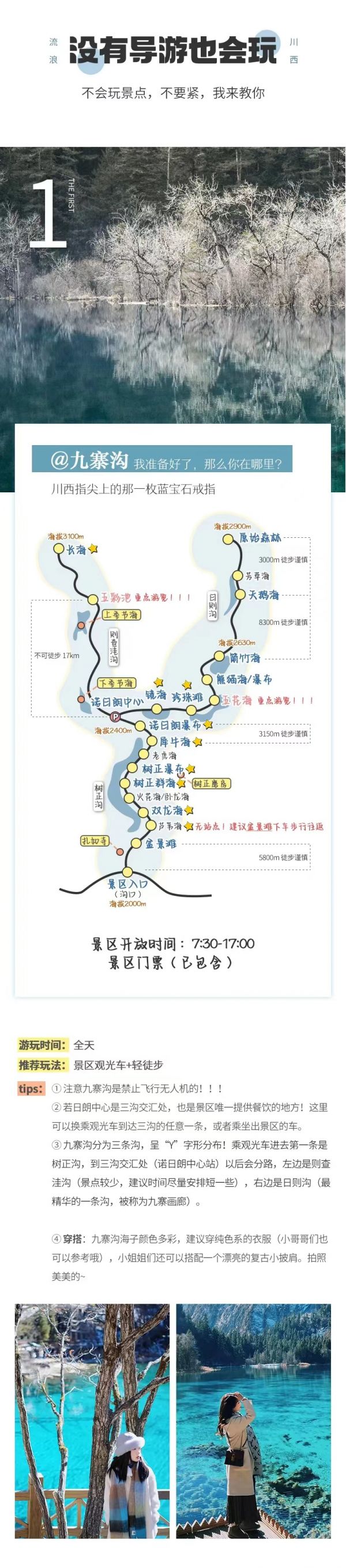 4、九寨溝景區(qū)實(shí)行分區(qū)域開(kāi)放,開(kāi)放區(qū)域?yàn)闇峡诮?jīng)諾日朗瀑布至長(zhǎng)海,扎如溝的扎如寺及日則溝的鏡海;其中,長(zhǎng)海、五彩池、鏡海、諾日朗瀑布、樹(shù)正群海、雙龍海瀑布、扎如寺等景觀(guān)原則上為步行游覽區(qū),具體游覽方式請(qǐng)聽(tīng)從隨車(chē)講解員安排。