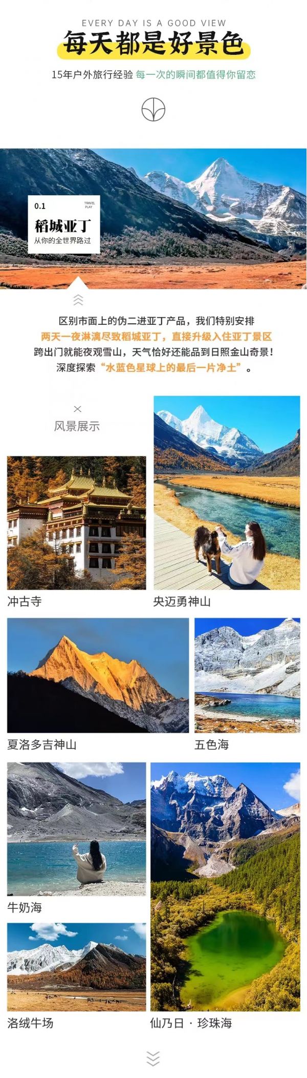 住宿:自理(可代訂)說(shuō)明”早餐后酒店集合出發(fā),前往紅海子,沿著公路下來(lái)可以看到一個(gè)紅海子的觀景臺(tái)這里能看到景區(qū)的全景如果想更加靠近雪山。我們順著公路往下走,就可以看到一條最美的網(wǎng)紅機(jī)場(chǎng)路-康定彩虹公路。