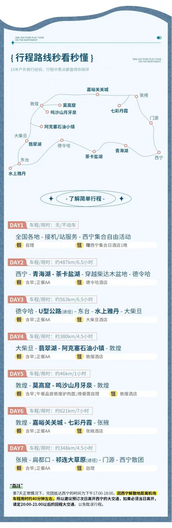2.當天一路人煙稀少,請大家務必準備好飲用水及干糧。柴達木盆地公路開闊,行車速度較快,自由活動時一定聽從領隊指揮,注意安全