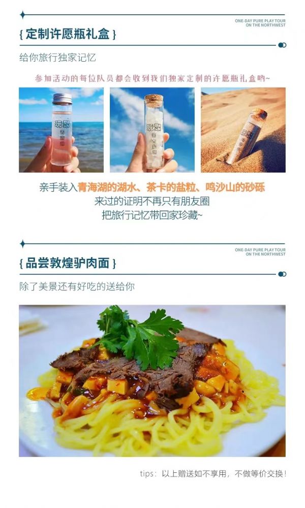 tips:西寧集合酒店為贈送酒店,酒店以實際安排為準均不退不換不指定,如要更改酒店產生的費用需要自行承擔。(4)品嘗敦煌驢肉面。