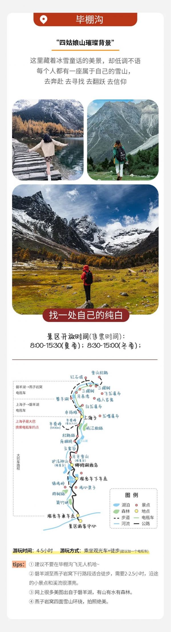 ? 美麗的山水世界【畢棚溝景區】(游覽時間3-4小時)換乘景區觀光車,觀賞古樸的原始風光,海龍王潭、女皇峰、娜姆湖、神女十二蜂、盤羊湖,美景讓您流連忘返, 這與大自然最親密的接觸, 留在心里,回味一生!冬季的畢棚溝,銀裝素裹,美不勝收,滑 雪、堆雪人,打雪仗,各種雪上娛樂項目其樂無窮。仿佛穿行如夢如幻的冰雪童話世界,畫下你的身影,將您的祝福永遠留在這里!穿梭于原始森林,眺綿延崎雪山雄峰、望飛瀉而下 的瀑布、看星羅棋布的海子、覓時有出沒的山珍野獸,夢幻般的世界讓你領略別樣的異族風情。