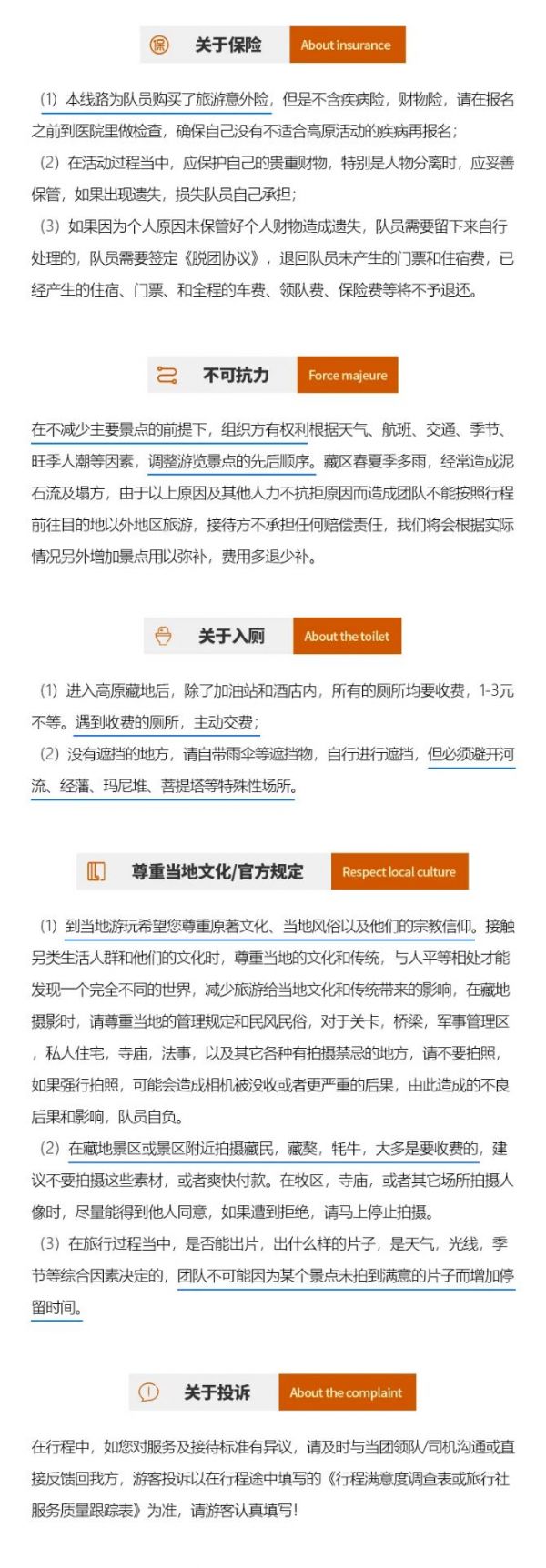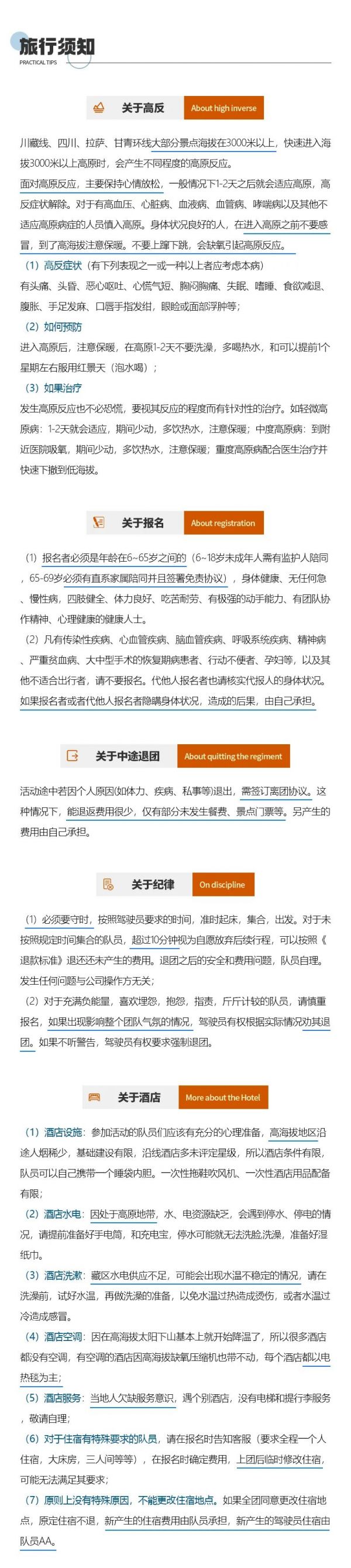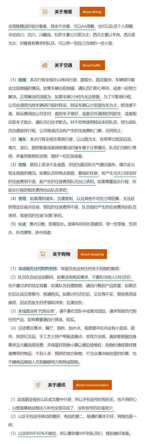 (6)沿途可能出現堵車、修路等不可抗因素導致用餐地點時間不穩定,建議大家提前備好充饑零食。