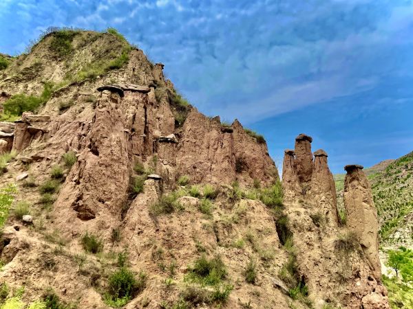 馮家會黃土林,位于磧口鎮馮家會村黃土沖溝中,大部分土柱的頂部有天然形成的蓋板。