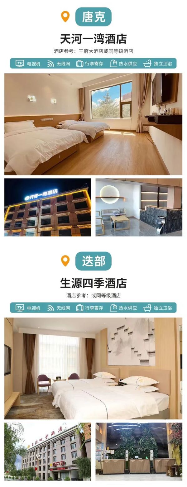 住宿:6晚當地舒適酒店,確保酒店干凈衛生,溫馨舒適。因沿途高原藏區條件有限,如果酒店設施沒有達到您的期望,敬請諒解。參考酒店如下: