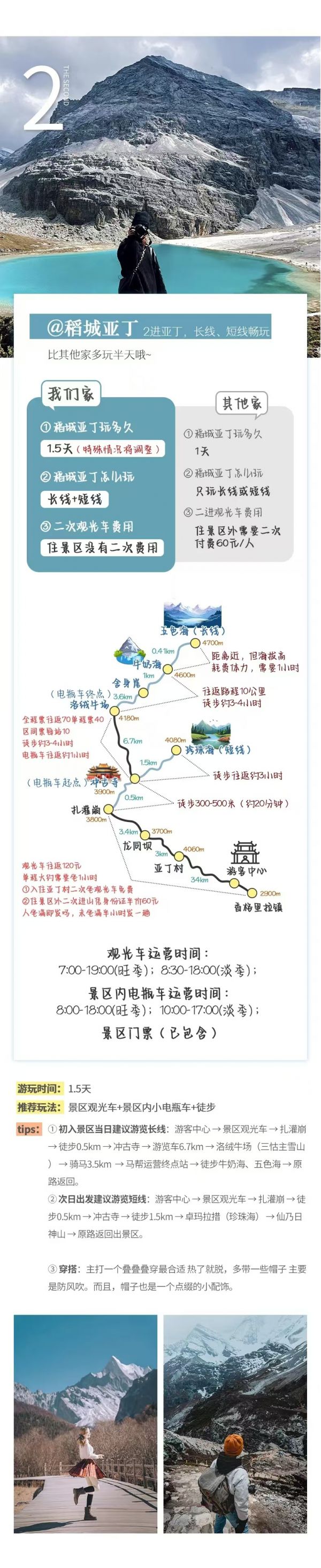 (1)領隊和車不能隨游客進入亞丁景區,如果當天入住亞丁村,請愿攜帶好洗漱用品和貴重物品,不帶的行李放在車上。? 繼續向理塘方向出發,傍晚時分到達目的地新龍或甘孜入住酒店。