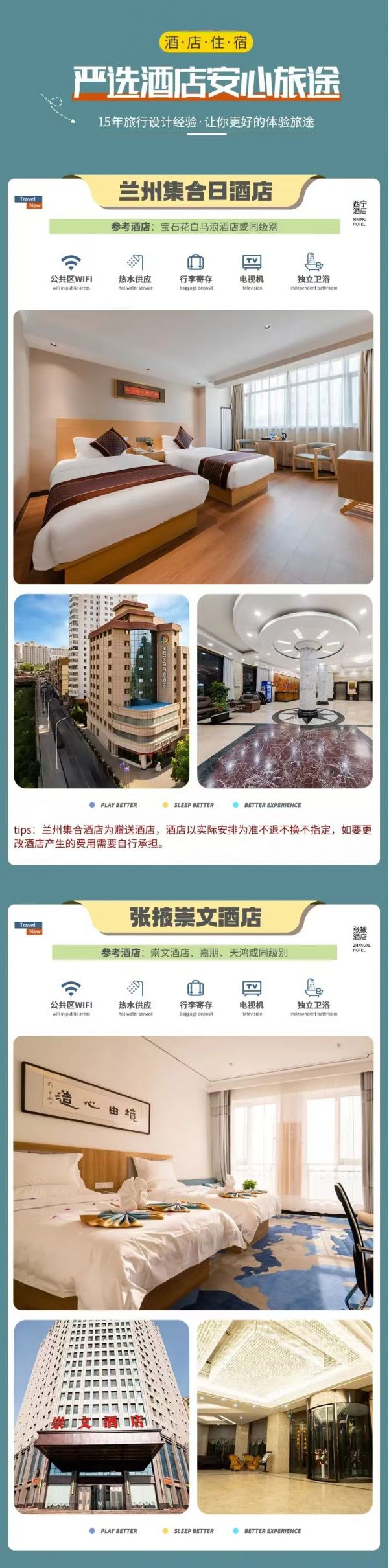 tips:蘭州集合酒店為贈送酒店,酒店以實際安排為準均不退不換不指定,如要更改酒店產生的費用需要自行承擔。