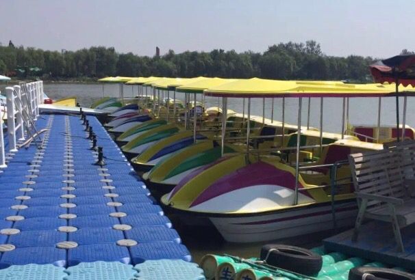 我們特別贈送游船項目。景區水域寬闊,霜雪湖就是利用景區的水資源建成的。霜雪湖濕地水道總長10公里,可與揚州的瘦西湖相媲美,是景區的水上游園線路。沿水道我們可以欣賞鹽堿地特有的生態林、天然濕地風光,形態各異的荷花和水生植物,與各種水鳥親密接觸!中心碼頭設有快艇、竹筏、腳踏船、手劃船等各種水上交通工具。您在此既可以體驗乘風破浪的快感,也可以享受碧波蕩舟漫步“瘦西湖”的愜意!(此處參觀約1小時)