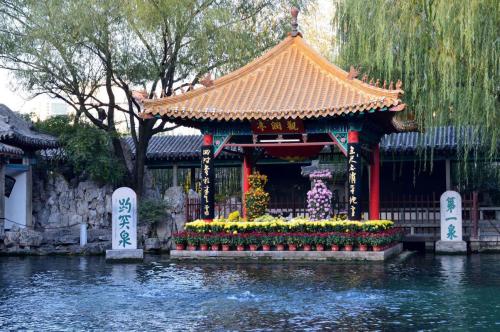 赴濟南,中餐后(聶晶)游覽濟南眾泉之冠---趵突泉;趵突泉(Baotu Spring),濟南三大名勝之一,位于山東省濟南市歷下區,東臨泉城廣場,北望五龍潭,面積達158畝,位居濟南七十二名泉之冠。乾隆皇帝南巡時因趵突泉水泡茶味醇甘美,曾冊封趵突泉為“天下第一泉”。也是最早見于古代文獻的濟南名泉。