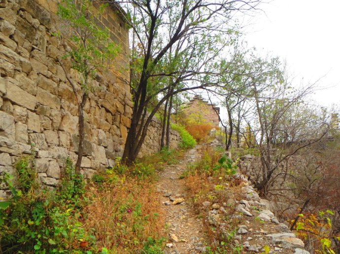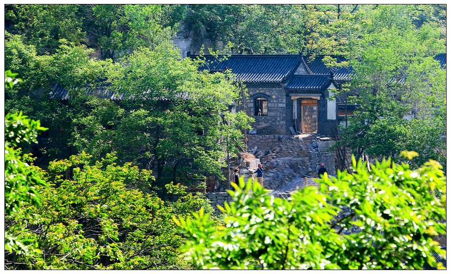 最讓人驚訝的莫過于建于懸崖峭壁上的房屋。村莊三面環山,以斷崖為障,隱于樹木之間。各種石頭砌成的房子,依山就勢,高低錯落,或依傍于懸崖旁,或坐落于巨石之上,懸崖最高處達60余米。從山下望上去,房子就象掛在天上,青石板路圍著山腰轉了幾轉,好像絲帶在山間飄舞,所以村子得“天上的村落”之美名。