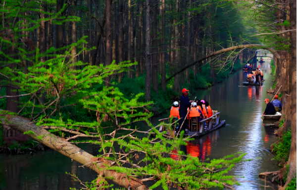 午餐后,下午前往【李中水上森林公園】,拍攝斜陽下的奇妙森林,進入景區你也可以泛舟于縱橫交錯的河流之上,或置身于高大的水杉林之中,這兩者都可以讓你欣賞到“樹在水中長,鳥在身邊飛”的生態美景。
