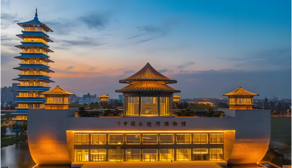 【中國大運河博物館】簡稱“運博”,全稱“揚州中國大運河博物館”,國家一級博物館,位于江蘇省揚州市廣陵區開發東路(三灣濕地公園西北側約150米),占地200畝,總建筑面積約8萬平方米,隸屬江蘇省文化和旅游廳,是集文物保護、科研展陳、休閑體驗為一體的地方現代化綜合性博物館,是大運河國家文化公園建設標志性項目,由南京博物院負責布展和運營。揚州中國大運河博物館展覽以“運河帶來的美好生活”為總體定位,設有“大運河—中國的世界文化遺產”“因運而生—大運河街肆印象”2個基本陳列,以及“運河上的舟楫”“運河濕地尋趣”“大明都水監之運河迷蹤”等9個專題展覽。