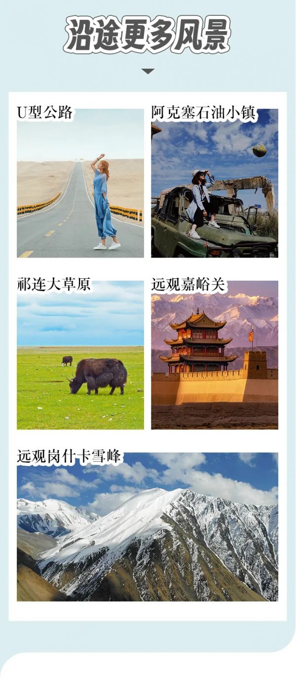 門票:包含茶卡鹽湖門票、鳴沙山月牙泉門票、張掖七彩丹霞門票、青海湖黑馬河門票、大柴旦翡翠湖門票