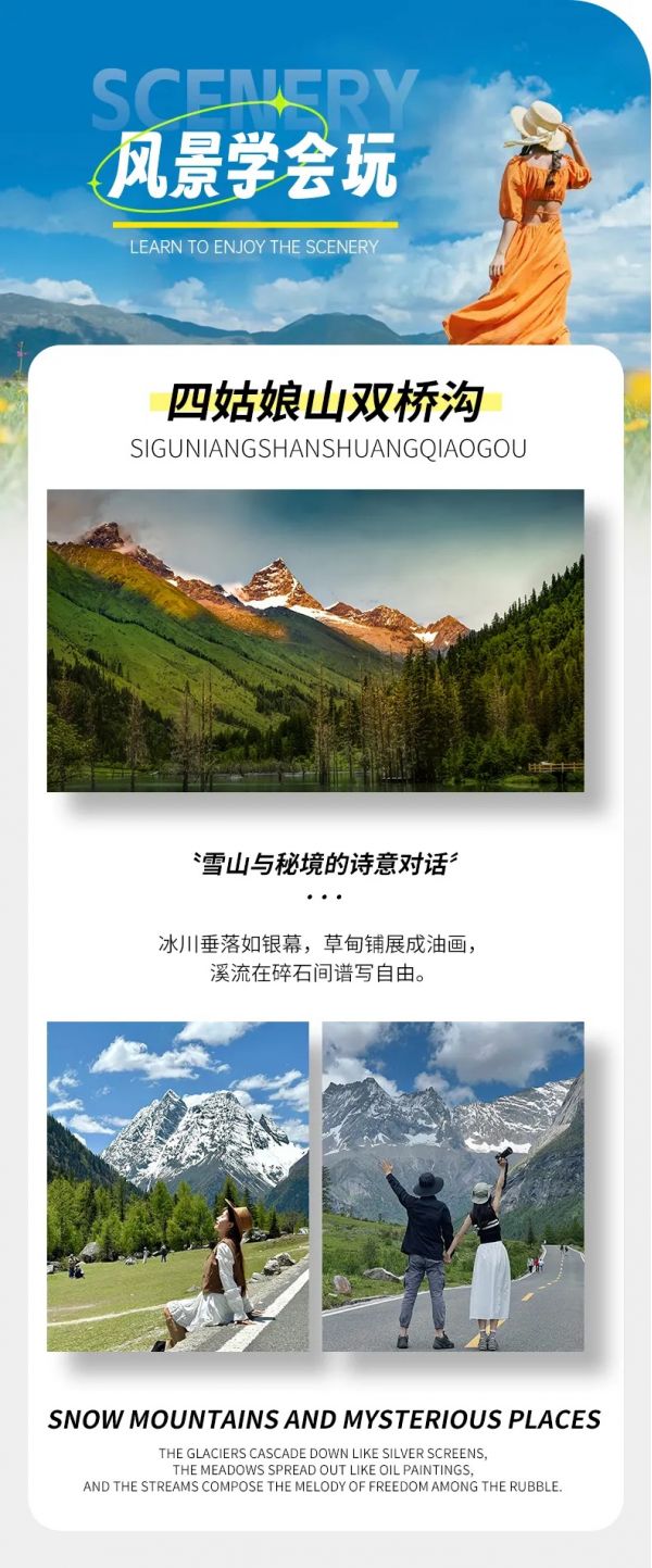 因雙橋溝有限流要求,如遇票滿,我們將更換安排海子溝和長坪溝的門票,以上兩個景點也同屬四姑娘山。