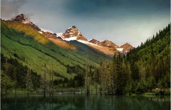 出隧道后,很快抵達四姑娘山雙橋溝景區。雙橋溝是四姑娘山三條溝中開發最完善、風景最為集中的一條。進入景區后,乘坐觀光車依次游覽各個景點。景區內雪山巍峨,山峰在陽光照耀下閃耀著圣潔的光芒;森林茂密,郁郁蔥蔥的樹木遮天蔽日;草甸廣袤,五彩斑斕的野花點綴其中。您可以在各個觀景臺下車,拍照留念,感受大自然的壯美。