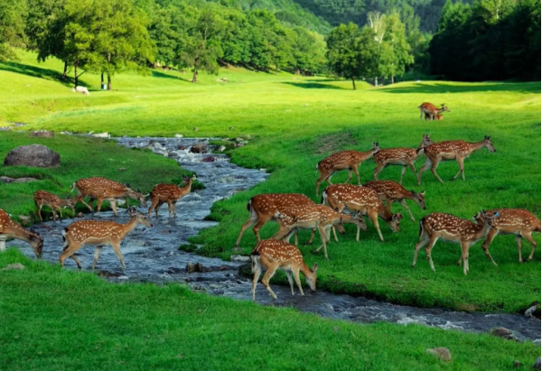 早餐后游九峰山養心谷景區:(距伊春1.5小時左右,游覽時間約2小時左右)中國十佳魅力生態景區---國家4A景區九峰山養心谷。九峰山可以用四句話來形容——九潭九瀑九龍柱,九橋九亭九花仙,九茶酒水九養地,九溝九溪九峰山。九峰山養心谷景區2016年以其獨特的養生文化被評為國家AAAA級景區,景區總占地面積5280公頃,景區分為東區、中區、南區及西區,景區以康養+旅游,研學游,生態游為主導思想,讓游客在游玩的同時與大自然徹底融合,調節身體各項細胞,真正的返樸歸真,最終實現森林康養的愿望!景區森林的覆蓋率高達95%以上,龍舌瀑布和神瀑水潭,貔貅潭、過水橋等水系環繞,林下植被豐富,水系發達,負氧離子濃度高。觀賞動物,暢游花海,中餐后游,中餐后去游覽金山鹿苑(車程約10分鐘左右,游覽時間約2小時):坐落在伊春市金山屯區境內、占地面積有60公頃、鹿苑內偌大的草坪寬闊平整、地勢微微起伏、中間一條小溪從山間緩緩流下、溪水清澈見底、宛如一個天然的高爾夫球場、偌大的草坪四周群山環抱、山腳下圍著草坪一條環形棧道、可以悠閑地圍著鹿苑草坪漫步、鹿苑以半開放的形式散養著幾百頭梅花鹿和天山馬鹿、小鹿兒在溪流間嬉戲、在草坪上奔跑、由于自然生態環境適宜、也經常有野生鹿出沒、鹿苑腹地占有大半個山頭、山間的草坪、樹林、溪流渾然一體、形成一幅祥和獨特的自然美景!