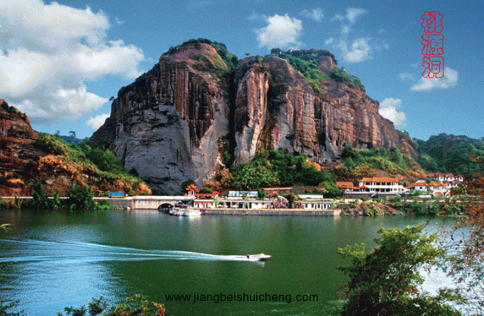 由漁亭沿漳水而上,距黟縣城8公里的石墨嶺南麓,山骨突出,巖石削立,古樹蔥郁,桃花夾岸。山腰鑿有洞,即桃源洞。穿沿而過,支木以行,故又稱棧閣嶺,下臨鐘潭,南北壁立百余米,漳水奪澗西瀉,山形險峻,風光綺麗。過洞豁然開朗,屋舍儼然,的確酷似陶淵明筆下的桃花源。