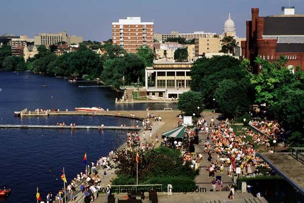至于威斯康辛麥迪遜校區的校園環境,更是一等一的好。在鄰近威斯康辛州首都的市中心,有一個相當有名的曼多塔湖(Lake Mendota),而靠著這個湖畔一千英畝的地方,就是美國最杰出的大學校園─威斯康辛大學麥迪遜校區。每年威大都會在曼多塔湖舉辦各項運動競賽,也有不少學生在湖畔進行社團活動或是小團體的聚會,但大多數都是大學部的學生。不過曼多塔湖的確是所有就讀威斯康辛大學麥迪遜校區的學生最美好的一個回憶,在入學時和畢業后,才能有心情好好的欣賞這片美景,也算是威大學生的幸福。