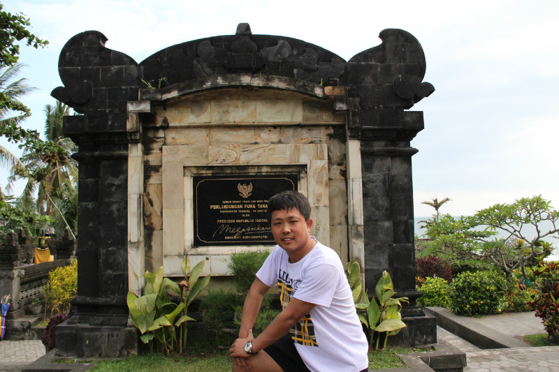 (海神廟)蓋在海邊的一塊巨巖上,它是巴厘島最著名的寺廟之一。漲潮時,此廟四周環繞海水,和陸地完全隔離。落潮時方可以相通。海神廟建于十六世紀,祭祀海神。