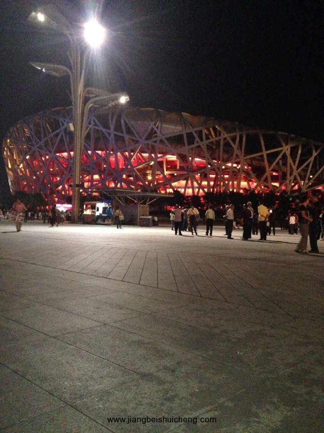 夜幕降臨,鳥(niǎo)巢籠上了柔和溫暖的色彩,提醒著晚歸的人們及早回家。