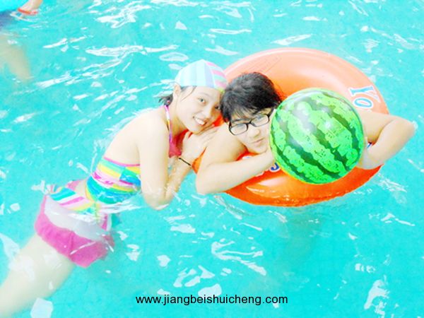 水池里人太多,我們?cè)谒剡吷虾蟼€(gè)影