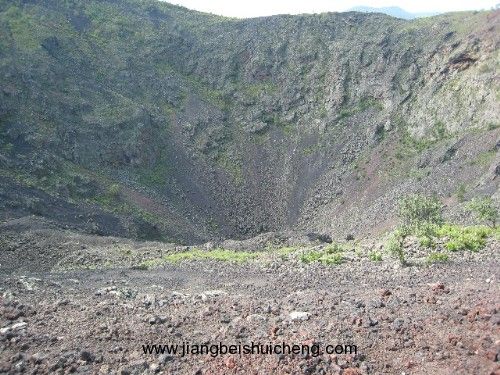 山體由早、晚兩個火山錐體套疊而成,早期的錐體被晚期的噴發破壞并占據,從植被的疏密上可以看出早晚的差別,它是一座休眠活火山。