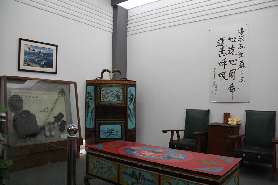 進入展館孔繁森同志的全身塑像毅力在巨石之上,似乎還在攀登那無盡的雪山。