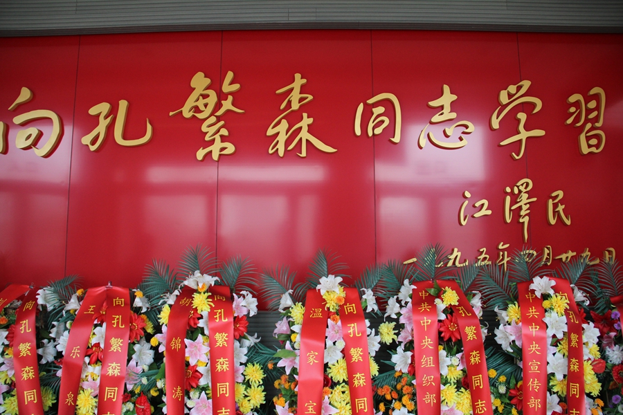 這里有國家領導和各界人士敬獻的花籃,讓我們向孔繁森同志學習。