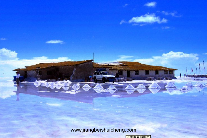 烏尤尼鹽沼(Salar de Uyuni)位于玻利維亞西南部天空之鏡的烏尤尼小鎮附近,是世界最大的鹽沼。東西長約250公里,南北寬約100公里,面積達10,582平方公里,盛產巖鹽與石膏。據考證,數百萬年前這里是一片汪洋大海,隨著地殼不斷上升,海水逐漸退去,留下一個個湖泊。