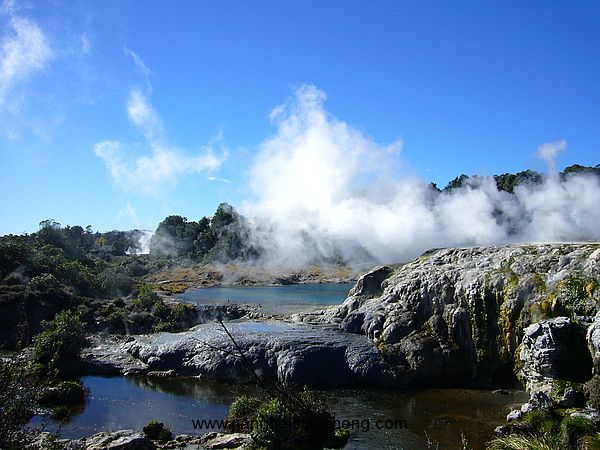 參觀1886年因塔拉威拉火山噴發而形成的迷人的懷旺格火山谷(Waimangu Volcanic Valley)觀看在法卡雷瓦雷瓦地熱保護區(Whakarewarewa Thermal Reserve)的普胡圖間歇噴泉。滾燙的熱泉水噴向天空,可持續噴發高達30米。