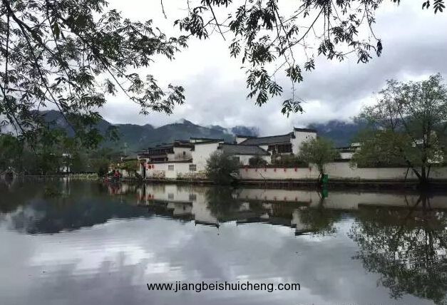 宏村為:山為牛頭,樹為角,屋為牛身,橋為腳”的牛形村落。