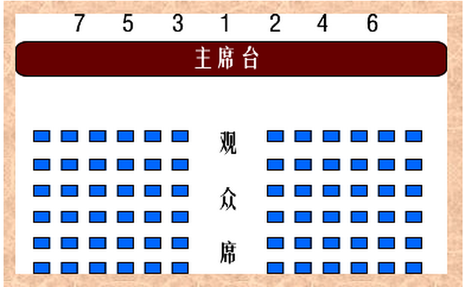 是不是感覺很復雜,被奇偶數(shù)給繞暈了呢?其實只要記住一個規(guī)律,那就是“先排1號領導,2號領導永遠在Ta左手位置,再按左右順序排下去就好了”。