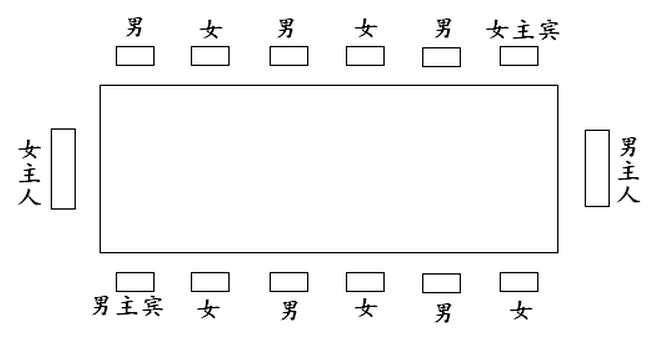 恭敬主賓(男女主賓分別緊靠女主人和男主人)