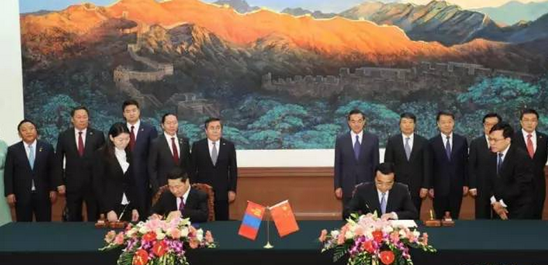 2013年10月25日,中國國務院總理李克強同蒙古國總理阿勒坦呼亞格在北京人民大會堂共同簽署《中蒙戰(zhàn)略伙伴關系中長期發(fā)展綱要》。