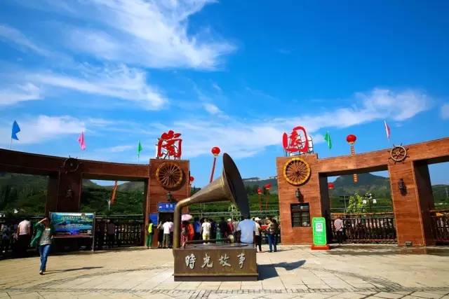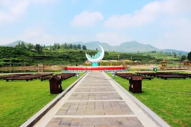 岱崮地貌核心區-崮園,偌大的留聲機哼唱著《彎彎的月亮》,與月亮灣遙相呼應。