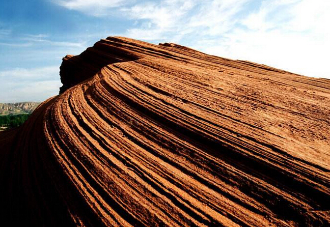 靖邊"波浪谷"這一名稱是來這里的攝影者給予的,它與亞利桑那州的波浪谷是有一定區別,亞利桑那州的波浪谷在紅色之間夾有白色線條,紅白相間;而靖邊的波浪谷則以紅色為主。