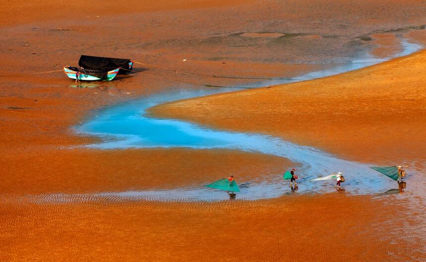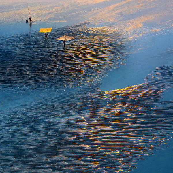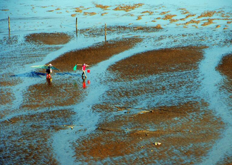 1.有人有景,營造情景交融的場景。霞浦灘涂常年都有人在勞作,點綴在灘涂上的人遠處看去雖然是星星點點的,但是往往是畫龍點睛之筆。