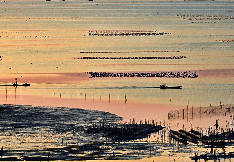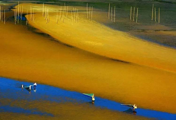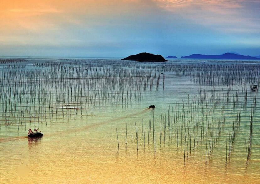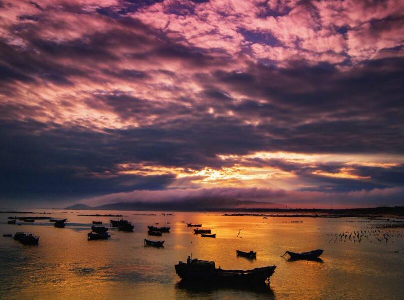 這里四季的潮汐變化、天光云影、原生態的海事活動,讓美麗神奇的海域瞬間迥異奇妙無比。那詭譎神秘的滿海竿影,那夢幻般的海上家園,那鷗鳥掠過浪尖撲騰灘涂,那金色沙灘褐色礁叢,那港灣遠空的一抹紅云束光,海上日出日落……都是那樣靈動令奇絕。
