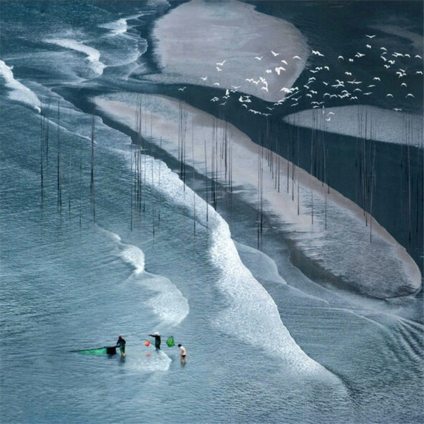 6.要充分利用霧霾天、薄陰天甚至雨天氣候以 及逆光手段拍好水墨味道作品,要充分利用晨昏低光的色溫拍攝油畫效果作品。先用廣角拍攝幾張大場景,之后用長焦慢慢切割和雕琢畫面,選擇不同的構圖拍攝出新奇的畫面。對灘涂做精細切割畫面成小畫面得把握好幾點。