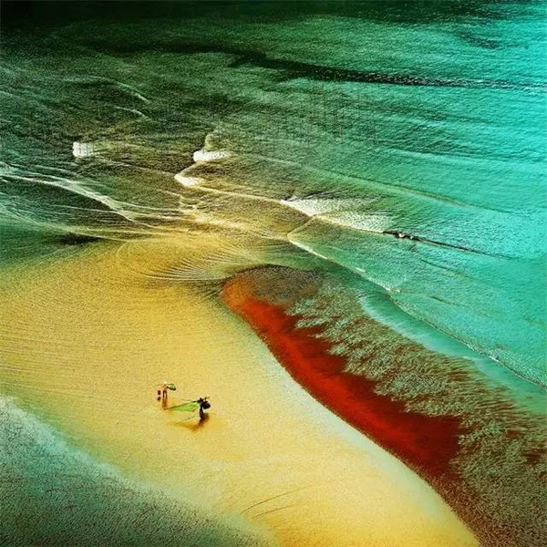 俗話說“站得高,看得遠”,拍攝灘涂就需要站在一個較高較遠的地方,用長焦捕捉海灘上的變化;長焦能更直觀的選擇并記錄灘涂中的無窮變化;還能夠壓縮空間 呈現一幅光影線條的抽象畫面,便 于廣大拍攝者的創作需求;因為長焦鏡頭都普遍比較重,而沿海附近風力也比較大,所以建議大家佩帶穩固的三腳架進行拍攝。