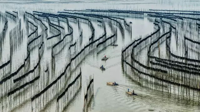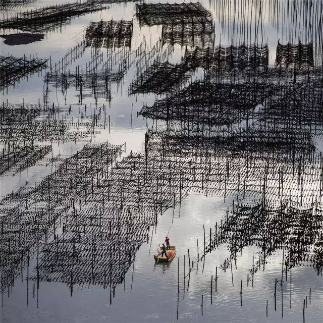 霞浦灘涂大面積的海上養殖,為灘涂添加了線條和規則的幾何圖案,可以利用這些圖案組成單一節奏感很強的畫面。