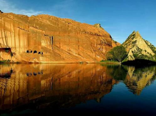 上午【大峽谷,一線天,通天柱,閆家寨,古城】這里黃土高原與丹霞地貌、綠色湖水干旱 荒 漠、千年古柳與深深峽谷,以及大自然的神奇、美妙真是讓人驚嘆不已!然后從峽谷底再盤旋而上,沿土路繼續前行,就到了閆家寨子,也是龍州古城的遺址,閆家寨子, 俗 稱閆寨子(上世紀三十年代的一個土匪山寨)。是由紅色的砂巖構成的特殊丹霞地貌。