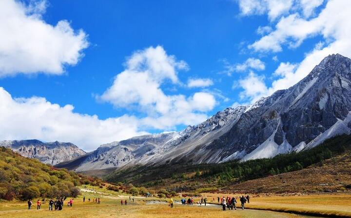 當天游覽線路參考:日瓦鄉(xiāng)~景區(qū)觀光車34km~亞丁村龍同壩~景區(qū)觀光車3.4km~扎灌崩~徒步0.5km~沖古寺~電瓶車6.7km~絡絨牛場(三怙主雪山)~騎馬5.3km~牛奶海、五色海。(原路返回亞丁村龍同壩)
